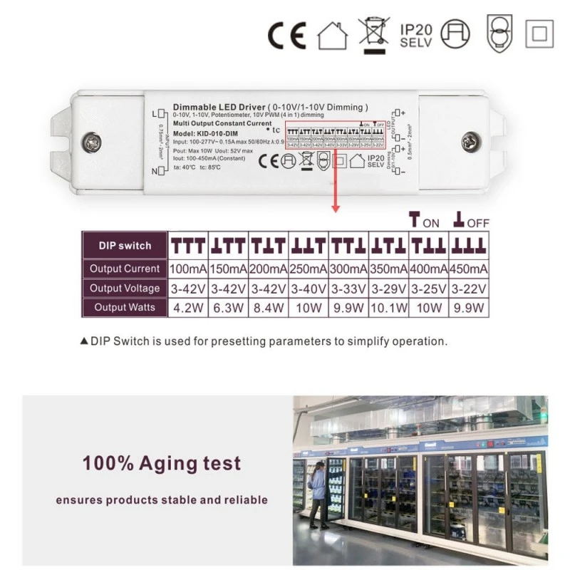 Starwell Constant Current 0-10V Dimmable Led Driver သတ်မှတ်ချက်-