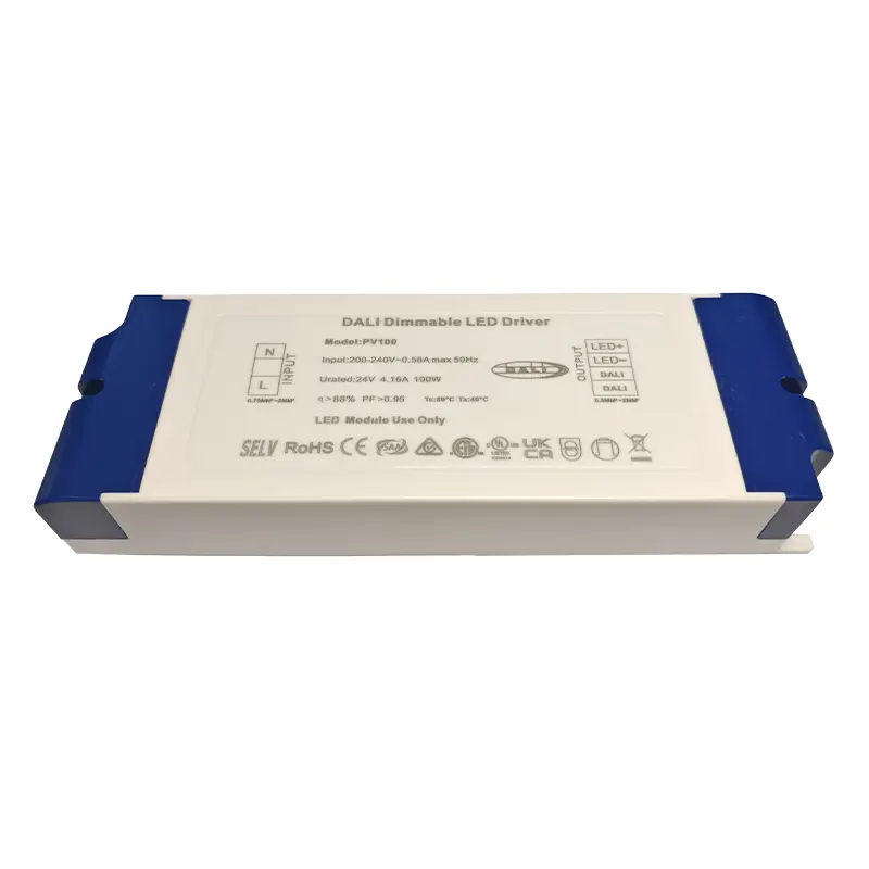 China ရှိ Constant Voltage DALI Drivers များ၏ ပရော်ဖက်ရှင်နယ် ထုတ်လုပ်သူအနေဖြင့် Starwell သည် သင့်အား 24V အမှိန်မလိုက်နိုင်သော အပလီကေးရှင်းများအတွက် အရည်အသွေးမြင့် 100W Constant Voltage DALI Driver ကို ပေးစွမ်းနိုင်ပြီး၊ တည်ငြိမ်သော 24V/4.16A DC အထွက်အား 90% အထိ ထိရောက်မှုရှိသည်။ ၎င်းသည် ချောမွေ့သော၊ တုန်ခါမှုမရှိဘဲ မှိန်ဖျော့ဖျော့ကို 100% မှ 0.1% အထိ ပံ့ပိုးပေးကာ ပြည့်စုံသော တိုတောင်းသောပတ်လမ်း၊ ဗို့အားလွန်မှု၊ ဝန်ပိုမှုနှင့် အပူချိန်လွန်ကဲမှုကာကွယ်မှုလုပ်ဆောင်ချက်များပါရှိသည်။