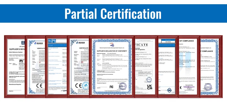 ထုတ်ကုန်အများစုသည် BIS, CE, CB, TUV, SAA လက်မှတ်ရထားသည်။