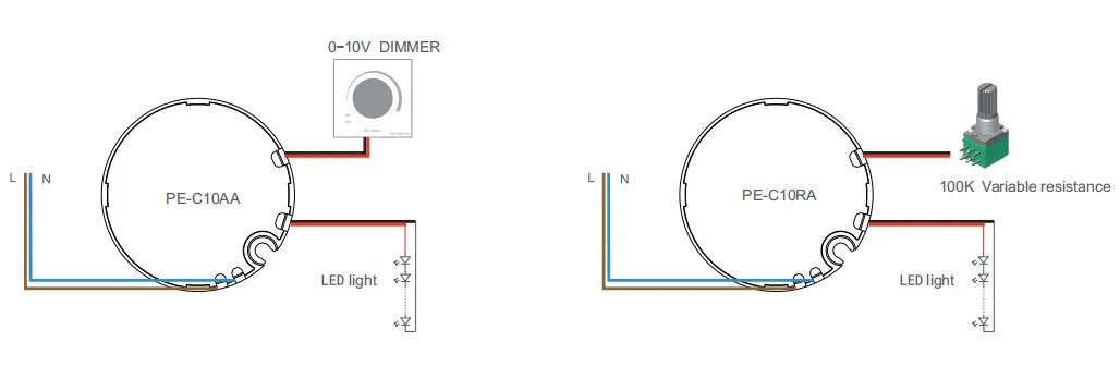 0-10V 1-10V 10vpwm အချက်ပြ အင်တာဖေ့စ် လက်ရှိ < 0.1mA (pe-c10ra အတွက် 100k potentiometer) |