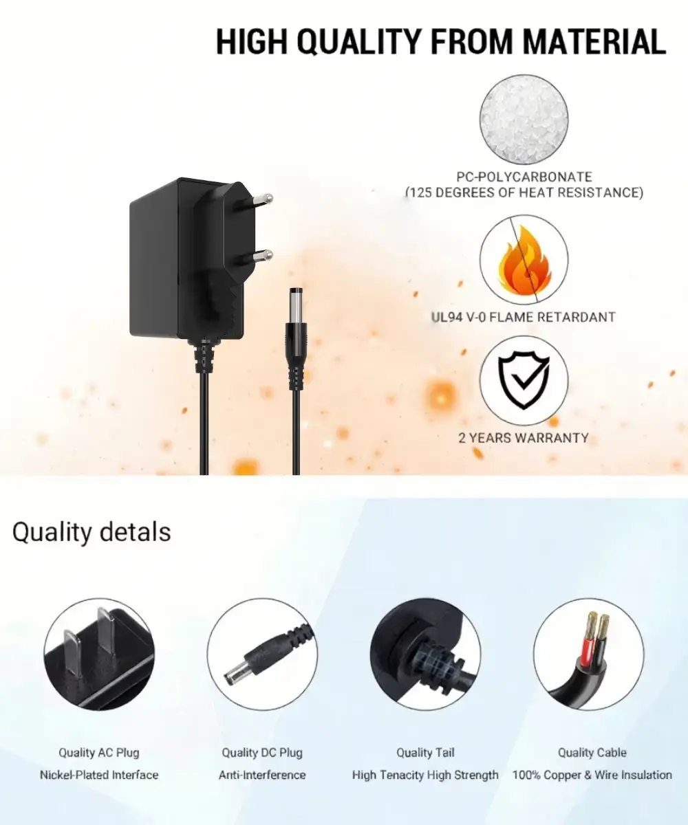သင်၏လိုအပ်ချက်များအားလုံးနှင့်ကိုက်ညီသောယုံကြည်မှုမြင့်မားသောစွမ်းအင်ထောက်ပံ့မှုအတွက် 12V 1.5A ဥရောပ Plug With Proll adapter ကိုရွေးချယ်ပါ။