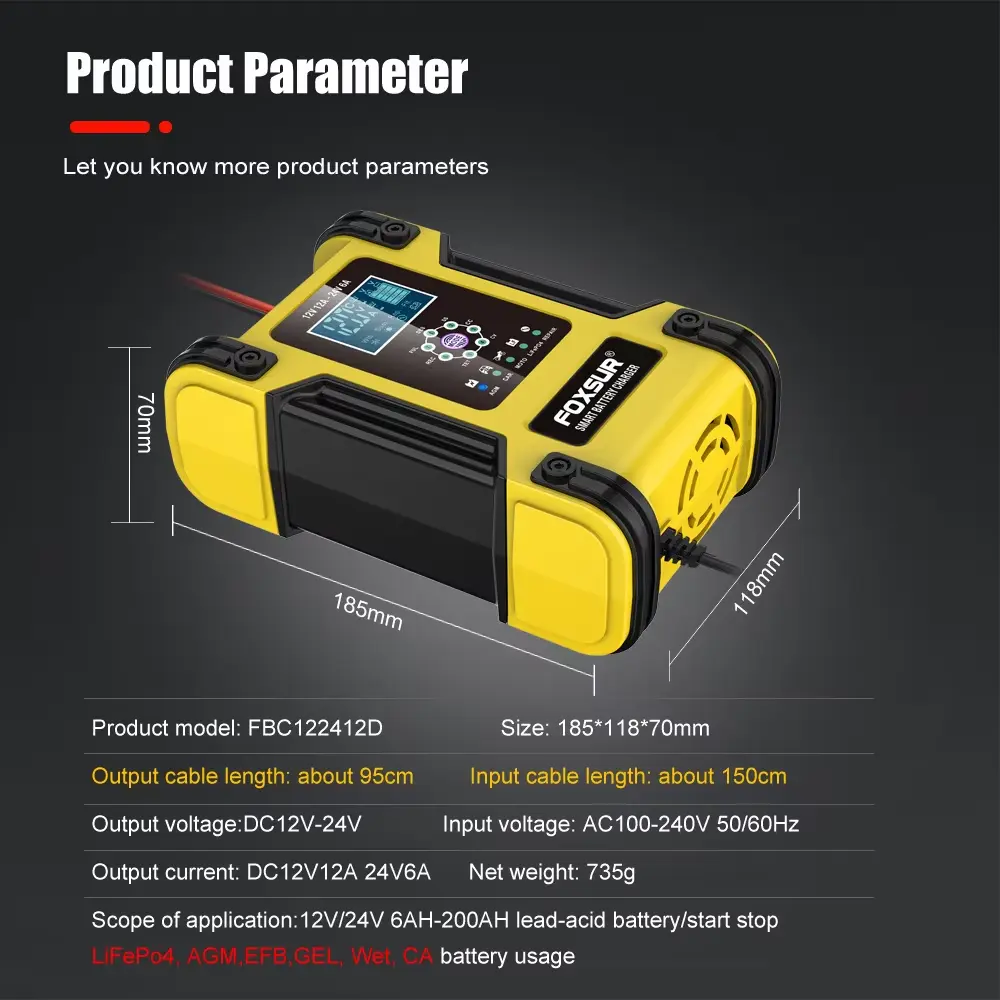 12A မြင့်မားသော Current Output- အလတ်စားမှ ကြီးမားသော စွမ်းရည်ရှိသော ဘက်ထရီများ (ပုံမှန်အကွာအဝေး- 20Ah–200Ah) အတွက် သင့်လျော်သည်။