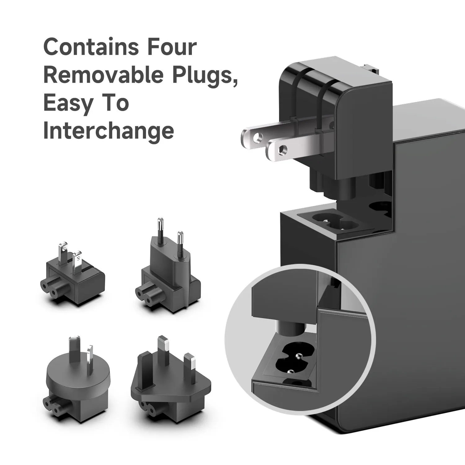 Multi-Standard Plugs: Starwell Power adapter သည် plugs (4) မျိုး (အမေရိကန်, အီးယူ, ယူကေနှင့် AU) တွင် snap-in-in plugs အမျိုးအစား 4 မျိုး (အမေရိကန်, အီးယူ, ယူကေနှင့် AU) တို့တပ်ဆင်ထားသည်။