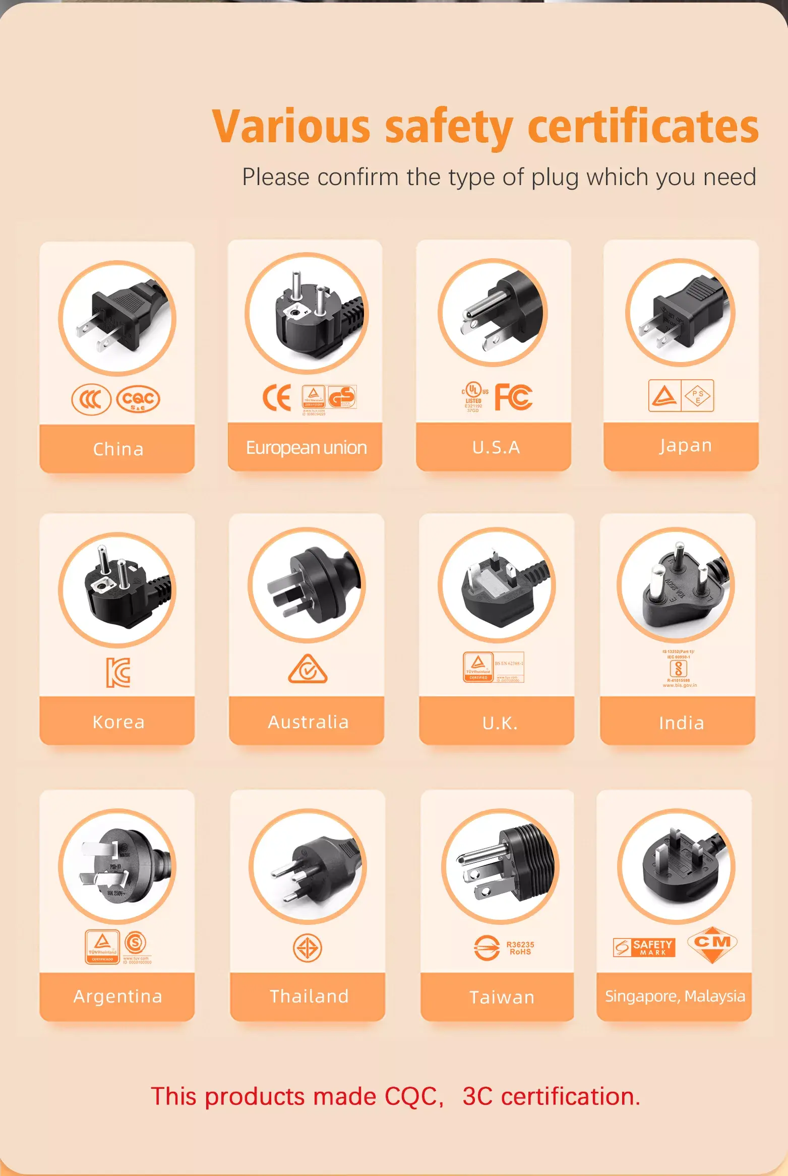 Input ဗို့အား - ပုံမှန်အားဖြင့် AC 100-240V (50 / 60Hz), Global Power Grid အတွက်သင့်တော်သည်။