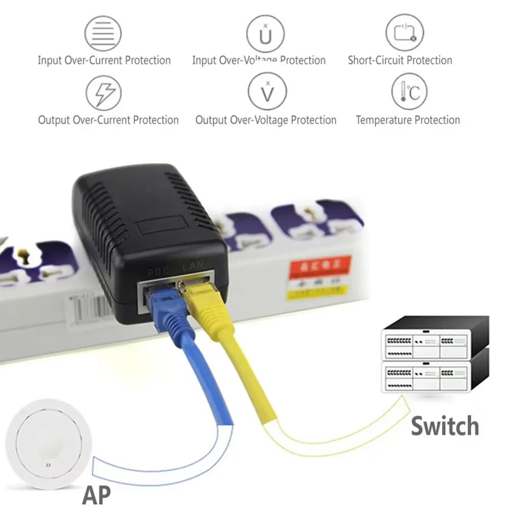 IP Camera အတွက် Universal Wall Plug Gigabit Ethernet POE Injector Adapter |