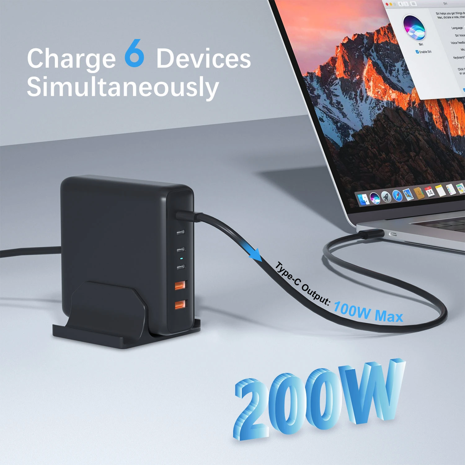 Gan 200w Fast Charger 4 USB-C + 2 USB - 200w PD charger
