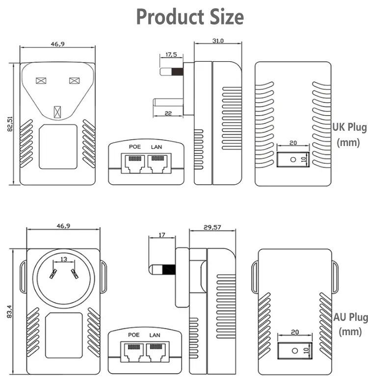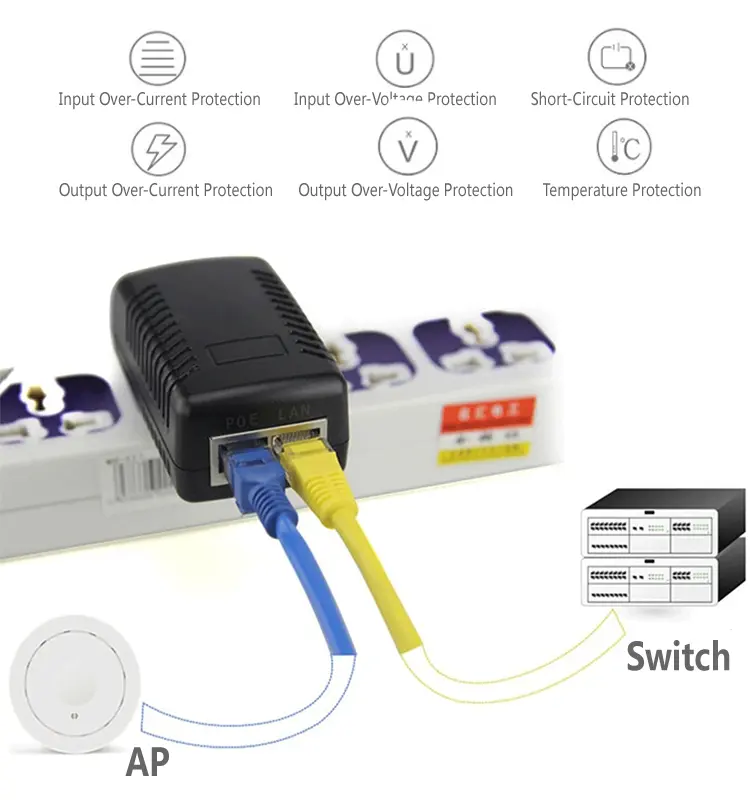 ကျစ်လစ်သိပ်သည်းသော နံရံပလပ်ပေါက်ဖွဲ့စည်းပုံသည် အပိုကြိုးကွင်းများ သို့မဟုတ် ဝိုင်ယာကြိုးများမလိုအပ်ဘဲ စံပါဝါပလပ်ပေါက်များဖြင့် တိုက်ရိုက်အသုံးပြုနိုင်ပါသည်။ ဤ 24V 1A 48V 0.5A POE injector သည် နေရာချွေတာပြီး ကေဘယ်ကြိုးများကို ရိုးရှင်းစေကာ အိမ်၊ ရုံး၊ ဆိုင်နှင့် အသေးစားစောင့်ကြည့်ရေးစနစ်များအတွက် စံပြရွေးချယ်မှုတစ်ခုဖြစ်လာသည်။