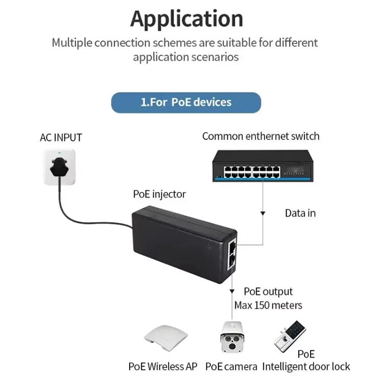 ဤ 24V 1A Gigabit passive POE injector ကို တွင်ကျယ်စွာအသုံးပြုသည်-