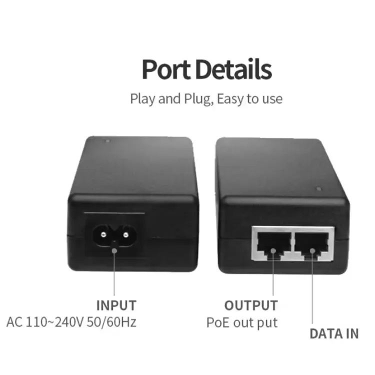 ဤ passive PoE injector သည် ပရိုတိုကောလက်ဆွဲခြင်းမရှိဘဲ တိုက်ရိုက်ပါဝါပို့လွှတ်မှုကို အသုံးပြုပြီး စနစ်ရှုပ်ထွေးမှုကို လျှော့ချကာ သီးခြားကွန်ရက်ချိတ်ဆက်ကိရိယာများနှင့် လိုက်ဖက်ညီမှုကို တိုးတက်စေသည်။