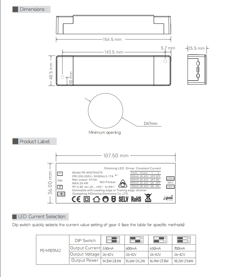 550/600/650/700mA |