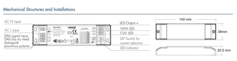 ဤအဆက်မပြတ်ဗို့အား DALI CCT dimmable LED ဒရိုက်ဘာသည် ±1% ဗို့အားခံနိုင်ရည်ရှိပြီး 2.5A အမြင့်ဆုံးလျှပ်စီးဖြင့် 12/24VDC အထွက်ကို ထုတ်ပေးသည်၊၊ အလိုအလျောက်ပြန်လည်ရယူခြင်းဘေးကင်းရေးကာကွယ်မှု 4 ခုနှင့် -20 ℃မှ +45 ℃တွင် တည်ငြိမ်သောလည်ပတ်မှုကို ပေးဆောင်သည်။ IP20 အဆင့်သတ်မှတ်ချက်၊ CE/TUV/RoHS အသိအမှတ်ပြုလက်မှတ်နှင့် 190,900-hour MTBF ဖြင့်၊ ဤအဆက်မပြတ်ဗို့အား DALI CCT မီးမှိန်နိုင်သော LED ဒရိုက်ဘာသည် အမျိုးမျိုးသော အိမ်တွင်းအလင်းရောင်အခြေအနေများတွင် တာရှည်ခံပြီး ဘေးကင်းသောစွမ်းဆောင်ရည်ကို အာမခံပါသည်။