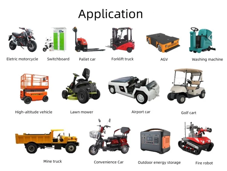 ထုတ်ကုန် လျှောက်လွှာများ လျှပ်စစ်ဘမ်ပါကားများနှင့် အပန်းဖြေစီးနင်းမှုများ ရှုခင်းကြည့်ယာဉ်များနှင့် ဂေါက်တွန်းလှည်းများ လှည့်ကင်းယာဉ်များနှင့် လုံခြုံရေးတွန်းလှည်းများ Forklifts နှင့် ပစ္စည်းကိုင်တွယ်သည့် ကိရိယာများ ကြမ်းပြင်ပွတ်တိုက်ခြင်းနှင့် သန့်ရှင်းရေးစက်များ ဂိုဒေါင်များအတွက် အလိုအလျောက်လမ်းညွှန်ယာဉ်များ (AGVs) လျှပ်စစ်သင်္ဘောများ၊ လှေများနှင့် အဏ္ဏဝါသုံးရေယာဉ်များ