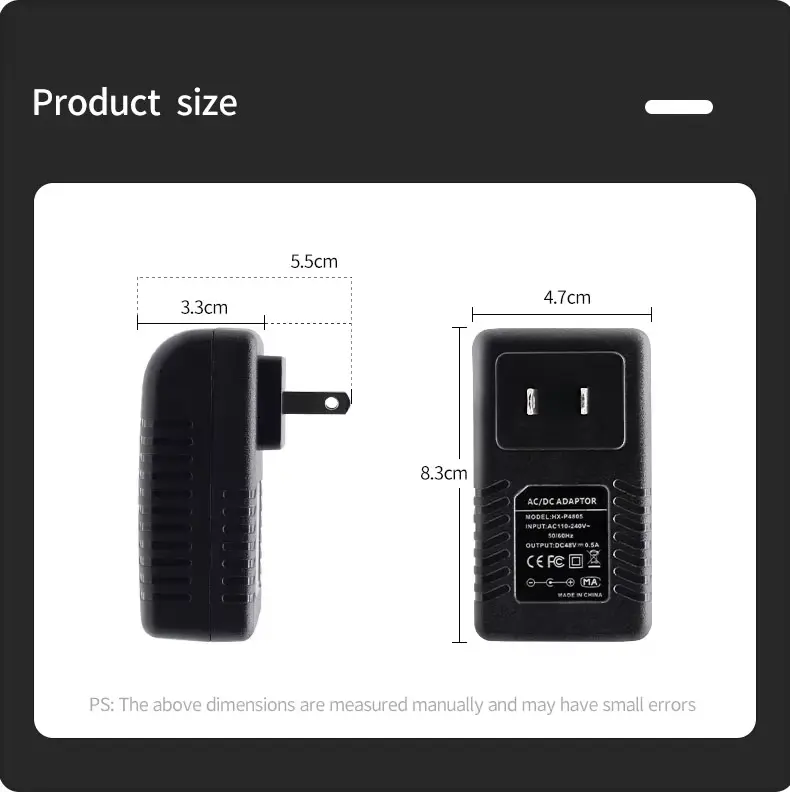 အထွက်- 48V DC 500mA - သင့်ယူနစ် 500 MilliAmps ထက်ပိုလိုအပ်ပါက ကျေးဇူးပြု၍ မမှာယူပါနှင့်။
