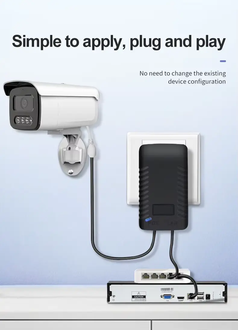 • 100M အထိ CAT 5 Ethernet cable မှတဆင့် စက်ပစ္စည်းများသို့ အဝေးမှပါဝါကို ပံ့ပိုးပေးပါသည်။