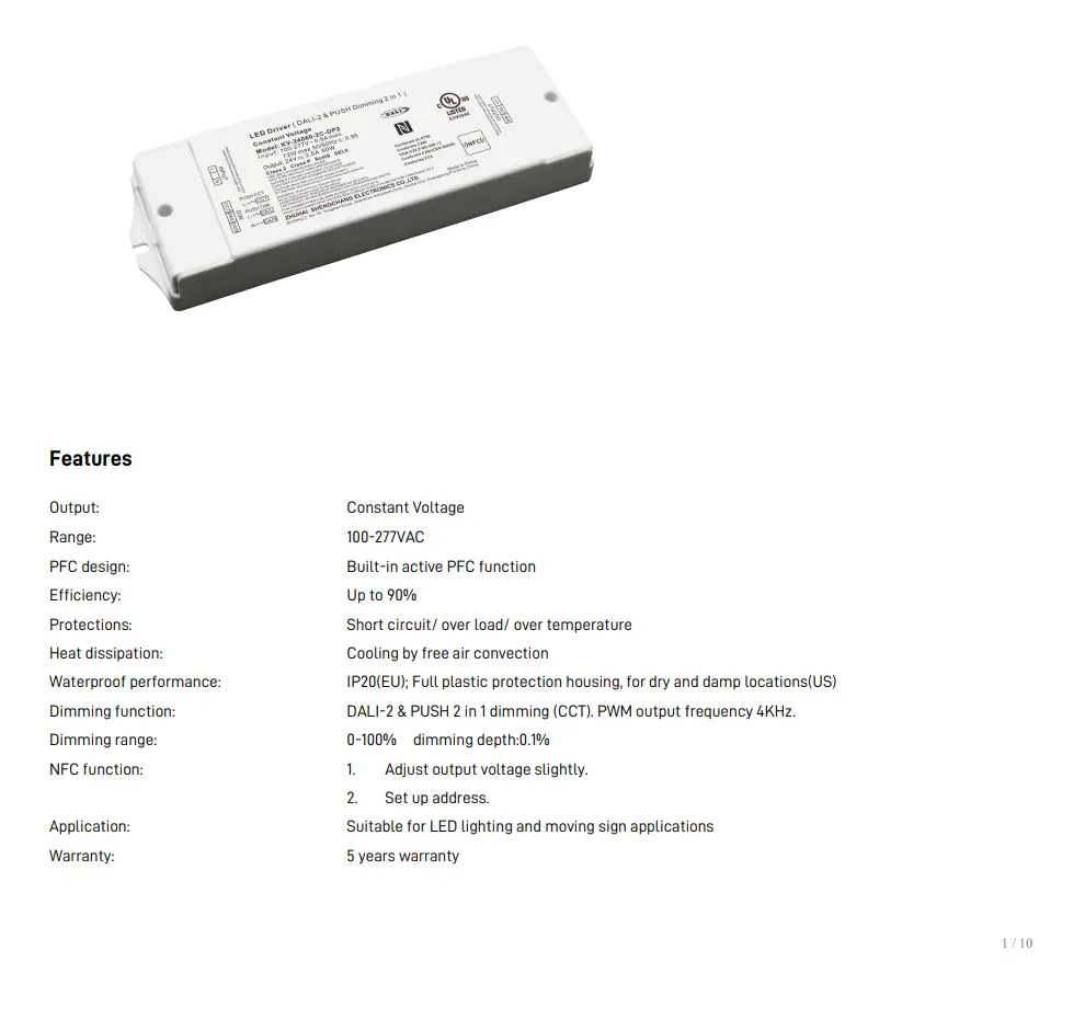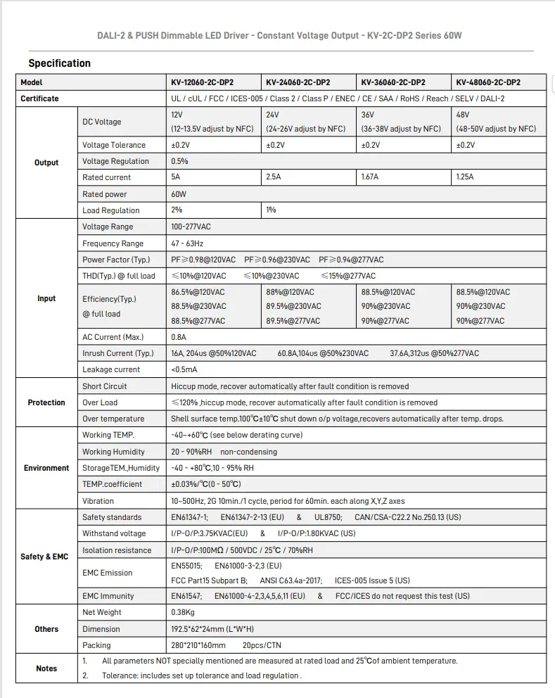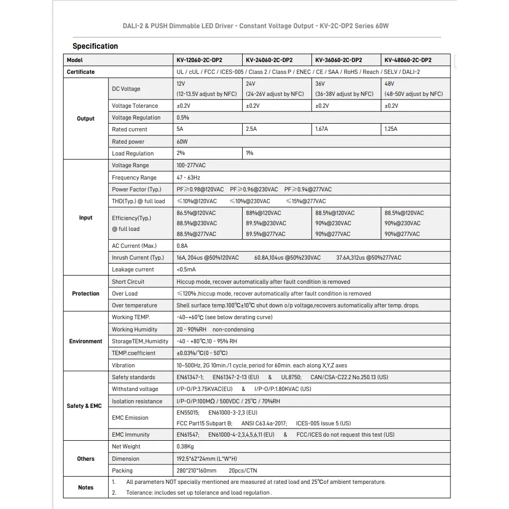 UL / cUL / FCC / ICES-005 / Class 2 / Class P / ENEC / CE / SAA / RoHS / Reach / SELV / DALI-2 |