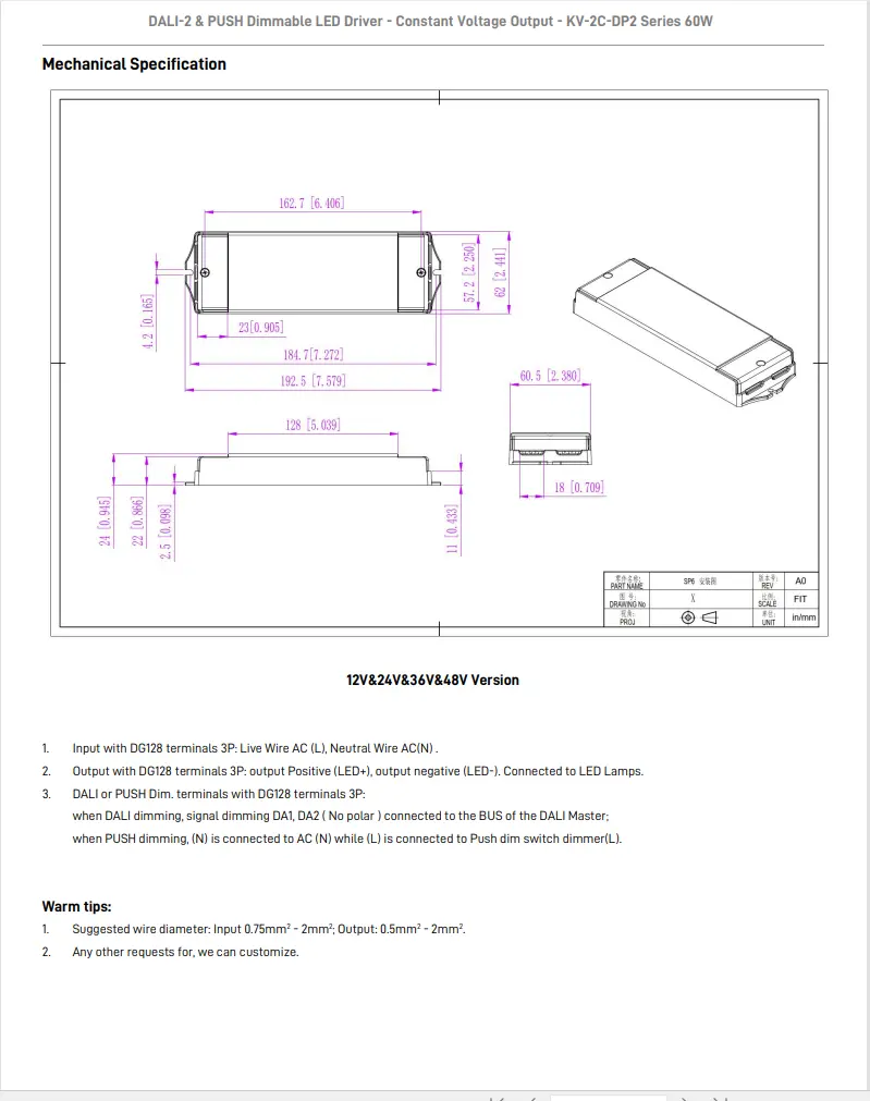 အလင်းမှိန်ခြင်းလုပ်ဆောင်ချက်- DALI-2 နှင့် 1 မှိန်ခြင်း 2 ချက် (CCT)။ PWM အထွက်ကြိမ်နှုန်း 4KHz ။