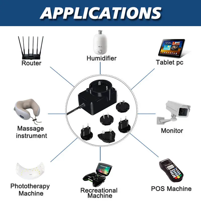 Sarwell အရည်အသွေးမြင့်မားခြင်းအလည်အပတ်ခွက်ပစာသည် Plugpter Supply Adapter သည်အီလက်ထရောနစ်ပစ္စည်းအမျိုးမျိုးမှလိုအပ်သောနံရံအပြင်ဘက်ရှိနံရံတစ်ခုမှ Elable, Low-voltage dc (တိုက်ရိုက်လက်ရှိ) ပါဝါကိုပြောင်းလဲရန်ဒီဇိုင်းပြုလုပ်ထားသောစွယ်စုံနှင့်အိတ်ဆောင်ကိရိယာဖြစ်သည်။ ၎င်း၏အဓိပ္ပါယ်ဖွင့်ဆိုချက်သည် detsamable နှင့် interchangeable plug များ (ac plugs "သို့မဟုတ်" ac plugs "သို့မဟုတ်" input blades "သို့မဟုတ်" Input Blades ") သည်အပြည်ပြည်ဆိုင်ရာ socket စံနှုန်းများနှင့်ကိုက်ညီသည်။