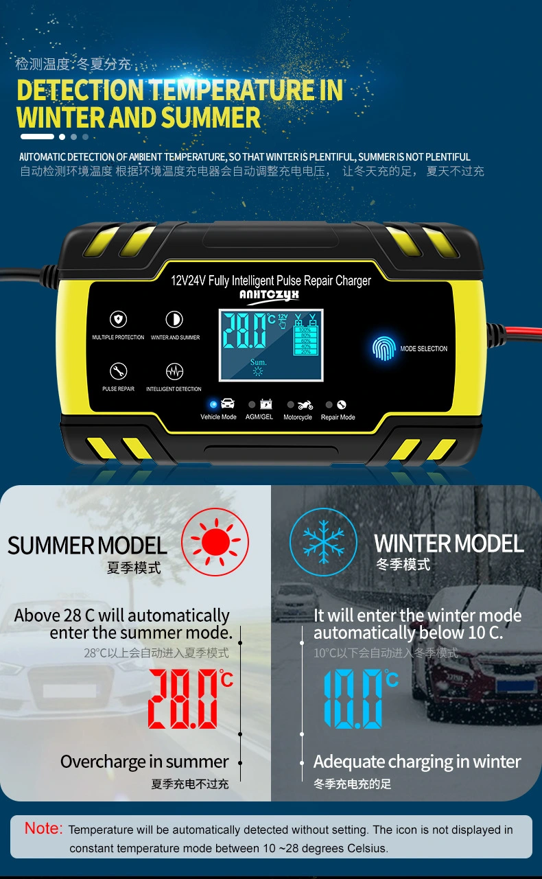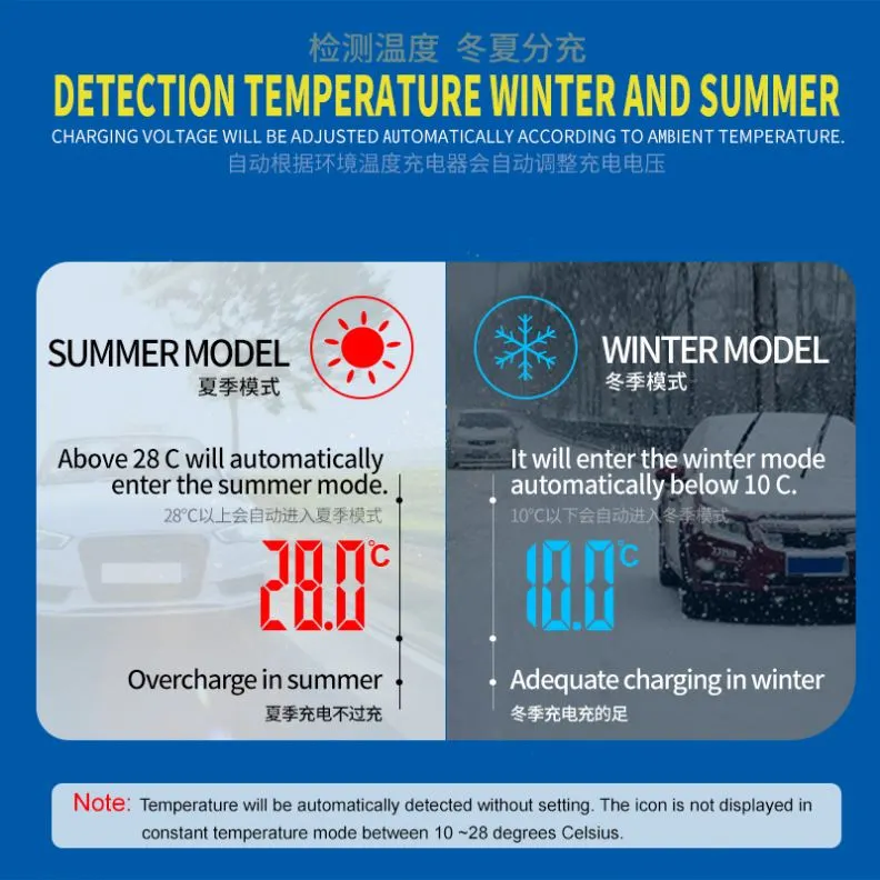 · အလိုအလျောက် ပြုပြင်ထိန်းသိမ်းမှုမုဒ်- ရာသီအလိုက် သို့မဟုတ် မကြာခဏအသုံးပြုလေ့ရှိသော မော်တော်ယာဉ်များအတွက် စံပြအဖြစ် အားသွင်းကိရိယာနှင့် ရေရှည်ဘက်ထရီထိန်းသိမ်းသူအဖြစ် လုပ်ဆောင်ပါသည်။