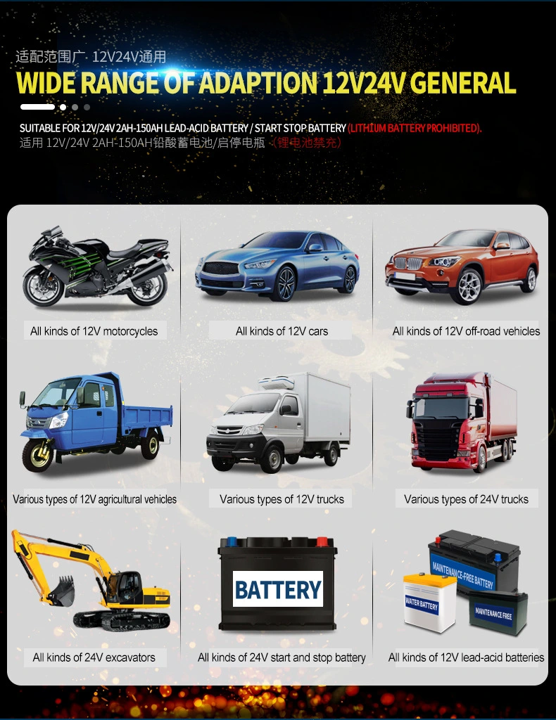 J30 ဉာဏ်ရည်မြင့်ဘက်ထရီအားသွင်းကိရိယာသည် ခေတ်မီစက်စတင်ရပ်သည့်ယာဉ်များနှင့် ရိုးရာခဲအက်ဆစ်ဘက်ထရီများအတွက် အထူးဒီဇိုင်းထုတ်ထားသည်။ ၎င်းသည် AGM၊ EFB၊ GEL နှင့် သာမန်ရေကြီးနေသော ခဲအက်ဆစ်ဘက်ထရီများနှင့် အပြည့်အဝသဟဇာတဖြစ်ပြီး 12V (8A) နှင့် 24V (4A) စနစ်များအတွက် သင့်လျော်သည်။ ကားများ၊ မော်တော်ဆိုင်ကယ်များ၊ ထရပ်ကားများနှင့် ရွက်လှေများကဲ့သို့ အမျိုးမျိုးသော အခြေအနေများတွင် ဘေးကင်းစွာ အသုံးပြုနိုင်ပါသည်။