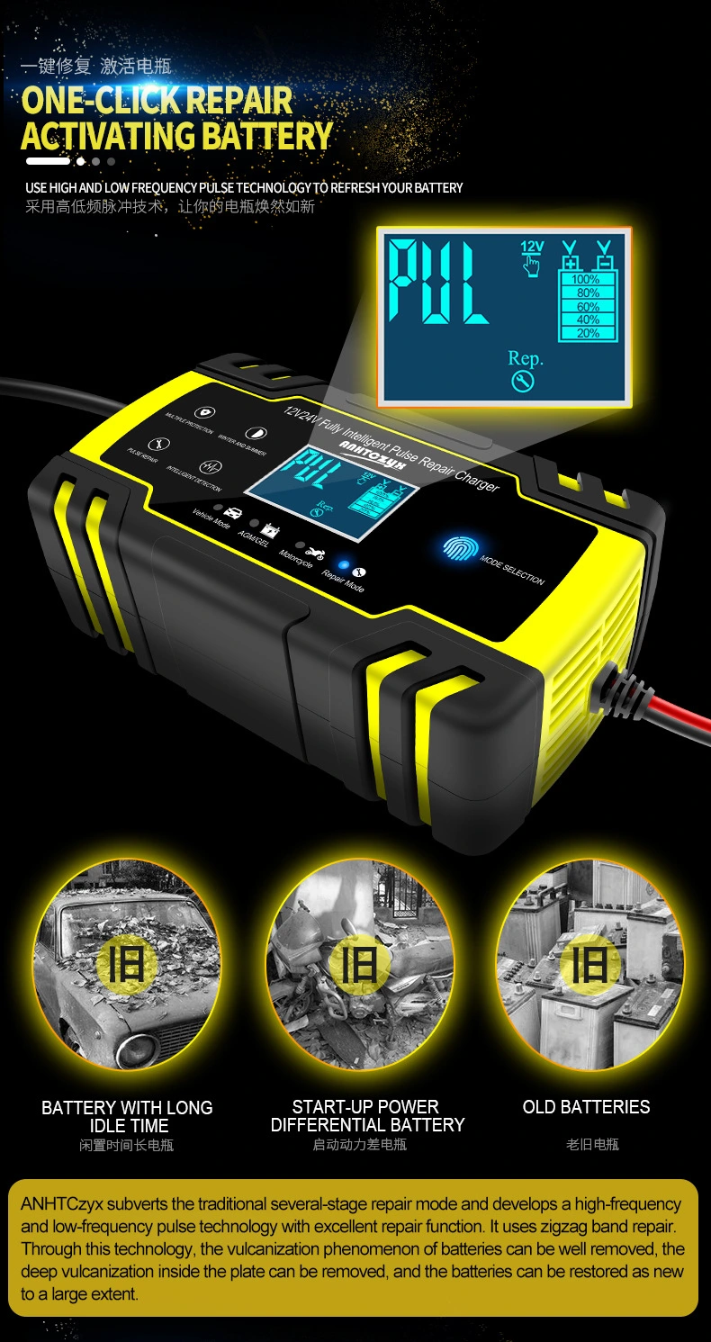 · Pulse Repair Function- ခဲဆာလ်ဖိတ်ပုံဆောင်ခဲ (sulfation) ကို လျှော့ချရန် ကြိမ်နှုန်းမြင့် သွေးခုန်နှုန်းနည်းပညာကို အသုံးပြု၍ အသက်ကြီးသော သို့မဟုတ် အားသွင်းထားသော ဘက်ထရီများတွင် ဆုံးရှုံးသွားသော စွမ်းရည်ကို ပြန်လည်ရရှိရန် ကူညီပေးသည်။