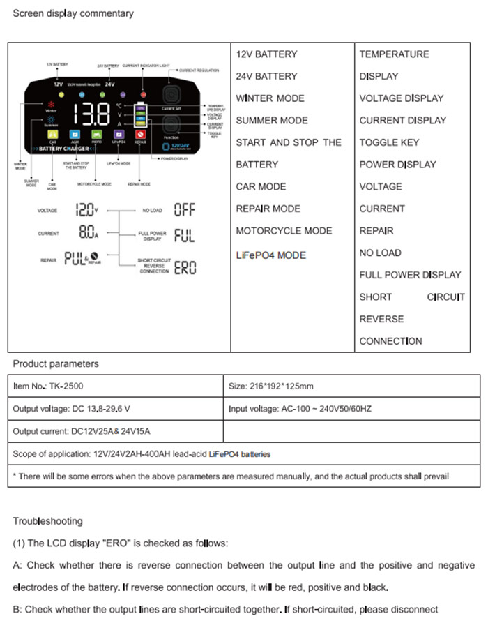 Universal 12V / 24V compativatibility - Standard 12-Volt နှင့် charging smold batter ကို 24-Volt ဘက်ထရီစနစ်များကိုတစ်ခုတည်း, ကား, မော်တော်ဆိုင်ကယ်များ, ထရပ်ကားများ, လှေများ, မြက်ခင်းပွားများ,