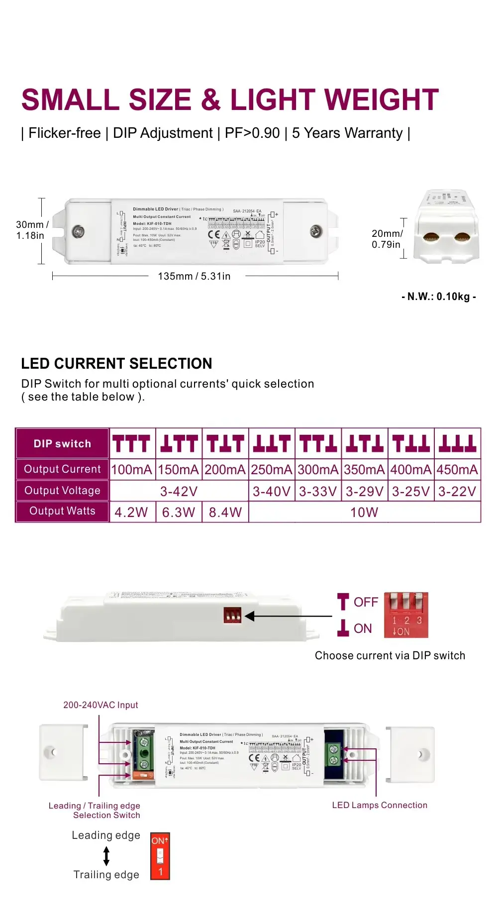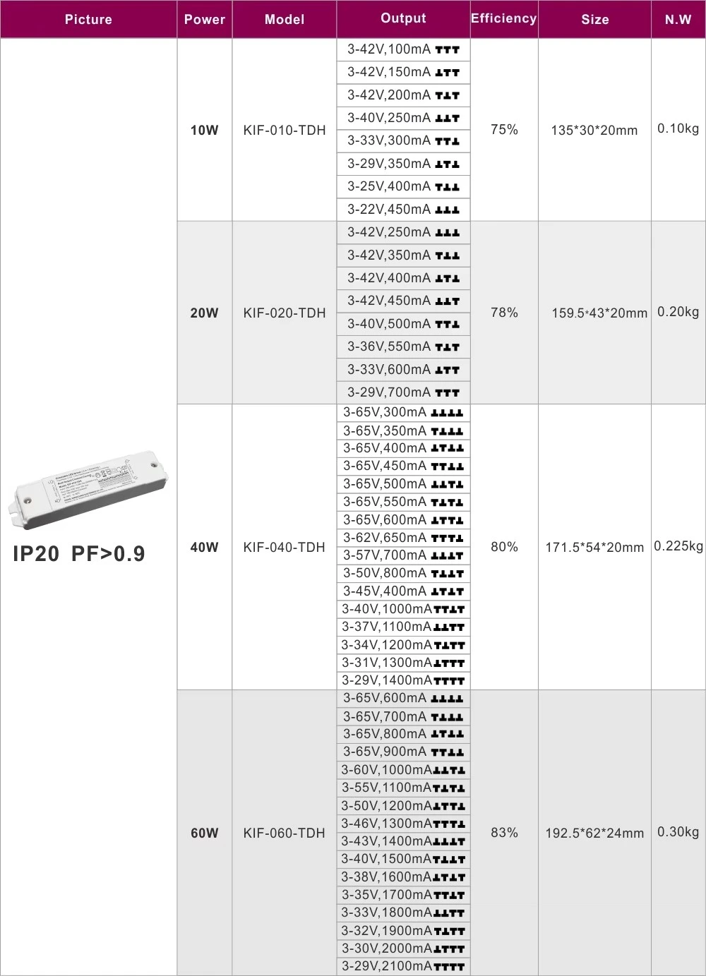 Starwell Constant Current IP20 Triac Dimmable Led Driver သတ်မှတ်ချက်-