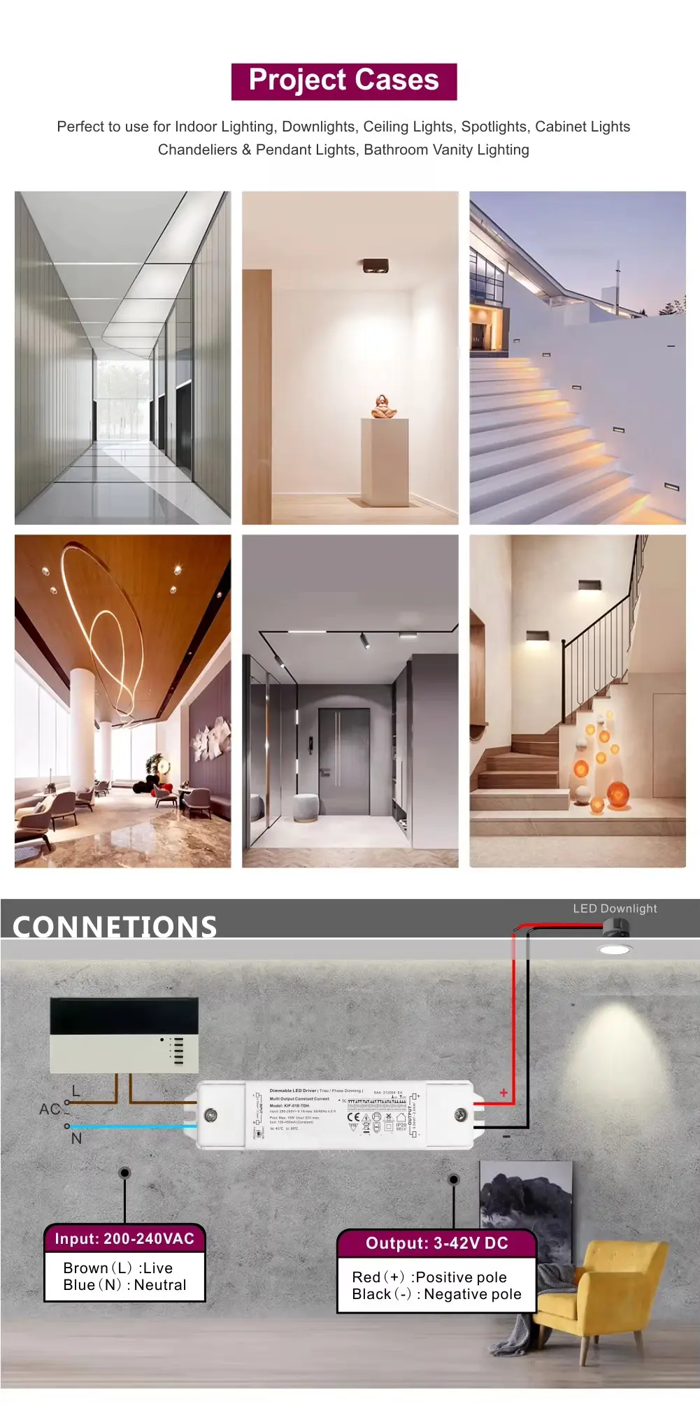 တည်ငြိမ်ပြီး အကာအကွယ်ပေးသော စဉ်ဆက်မပြတ် Current- သင်၏ LED မော်ဂျူးများသို့ တိကျသော၊ တည်ငြိမ်သော လက်ရှိထွက်ရှိမှုကို ထိန်းသိမ်းပေးကာ၊ တစ်သမတ်တည်းတောက်ပမှု၊ အရောင်ညီညွှတ်မှုရှိစေရန်နှင့် လက်ရှိအတက်အကျများနှင့် လှိုင်းတက်မှုများကို ကာကွယ်ခြင်းဖြင့် LED သက်တမ်းကို သက်တမ်းတိုးစေသည်။